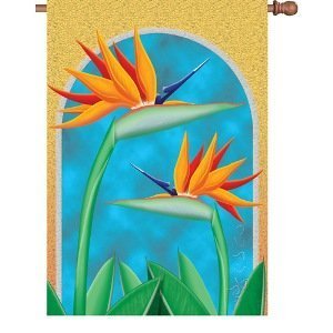 Embroidery is added to enhance details of this beautifully designed flag.House brilliance flag is printed using a dye sublimation technique for the best quality and reversibility.Strong, durable and high end leather tabs are used inside the house flag pole sleeves.Measures 28-inch width by 40-inch length.Available in paradise yoga theme..Paradise Yoga Bird of Paradise Decorative House Garden Flag by Premier Designs - 28" x 40" Features.